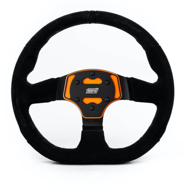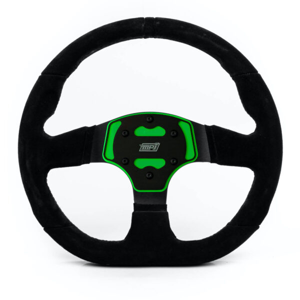Safety is always in the forefront of all MPI products. The inner structure has been engineered to deform under elevated impacts, absorbing the load and reducing the effect on the drivers upper body, offering an engineered safety advantage. The inner foam injection has been developed to have the highest vibration absorption rate in the industry. The special oval shaped grip makes holding the wheel a natural feel for the driver. The new aluminum D shaped structure features a unibody with no horn button for increase rigidity and durability and a flat bottom for extra leg room and easy exit adding a sporty look to the unit.